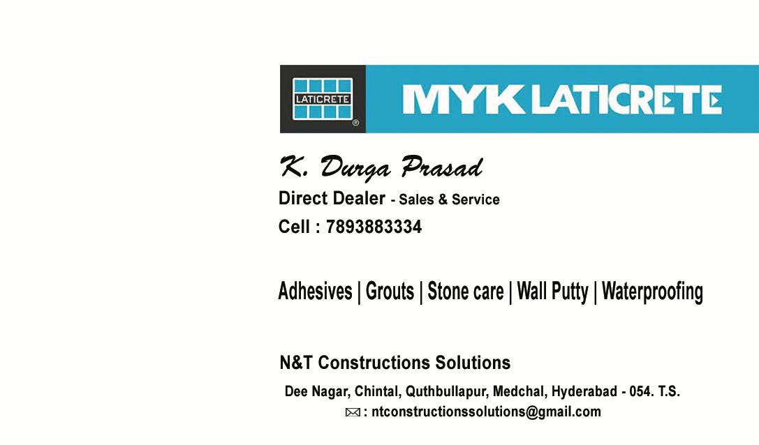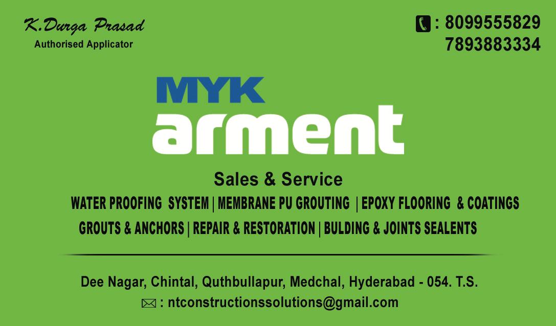 Solutions N&T Construction Solutions in Hyderabad is one of the leading businesses in the Waterproofing Contractors. Also known for Waterproofing Contractors, Waterproofing Contractors For Water Tank, Waterproofing Contractors For Terrace, Waterproofing Contractors For Roof, Waterproofing Contractors For Bathroom, Waterproofing Contractors For Wall, Waterproofing Contractors For Basement, Waterproofing Contractors For Floor and much more.